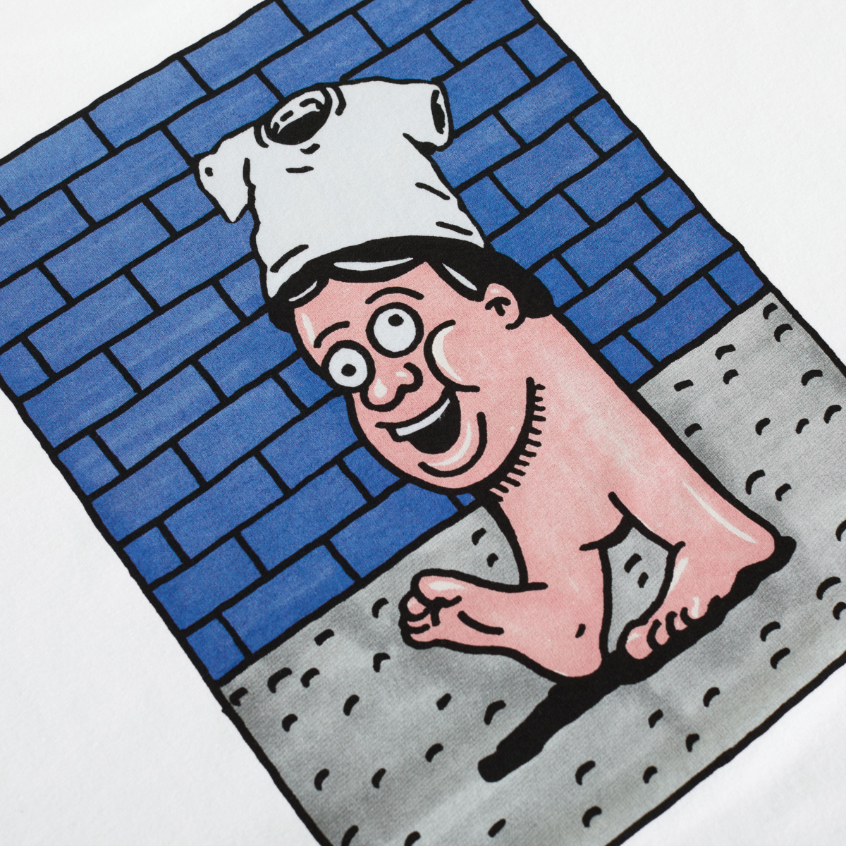 T-shirt Polar manches courte, coupe classique avec épaules légèrement tombantes et col ras du cou côtelé fabriqué dans un coton blanc épais pré-rétréci. Visuel par Jacob Ovgren imprimé dans le dos et logo Polar sur la poitrine.