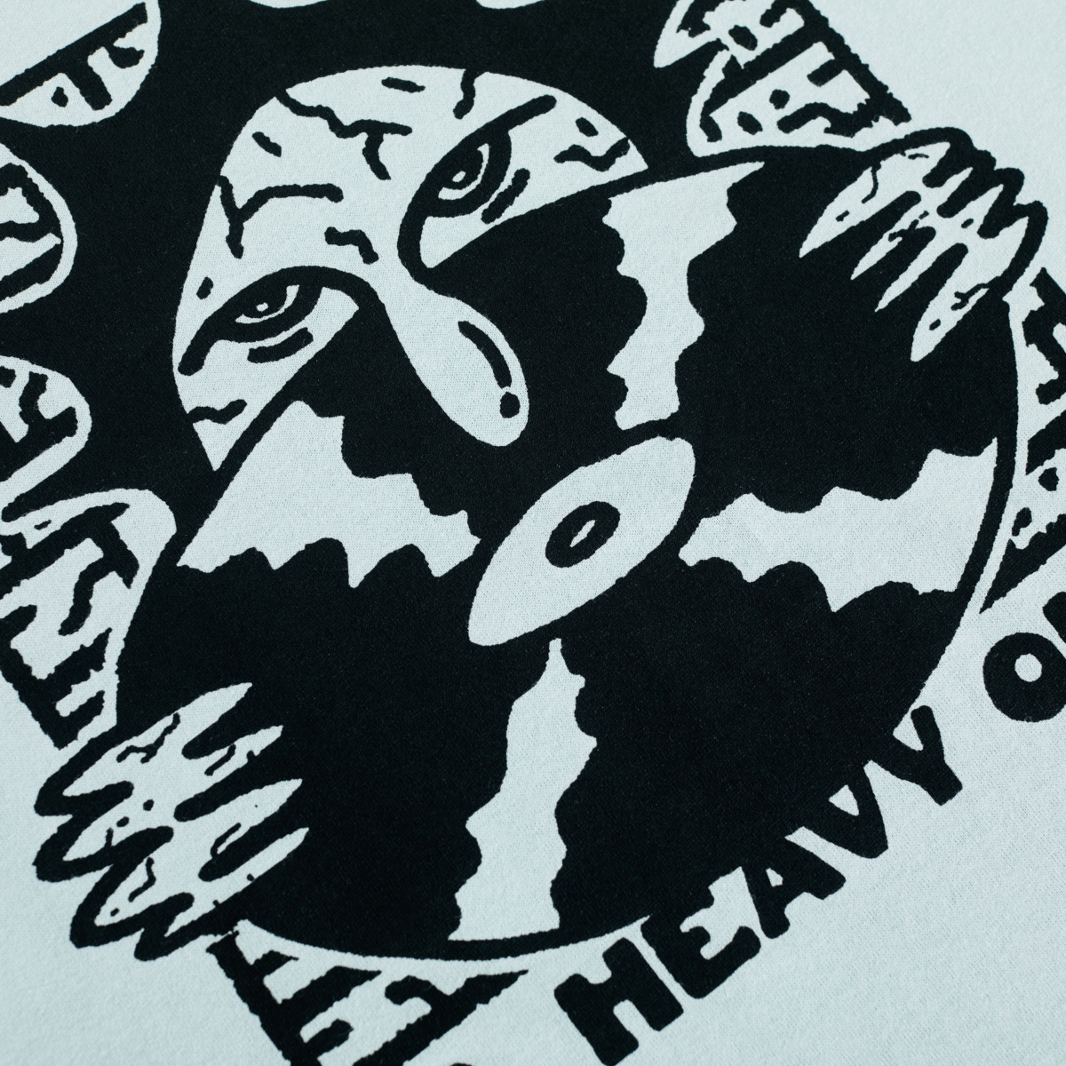 T-shirt Polar manches courte, coupe classique avec épaules légèrement tombantes et col ras du cou côtelé fabriqué dans un coton blanc épais pré-rétréci. Visuel par Julian Smith imprimé dans le dos et logo Polar sur la poitrine.